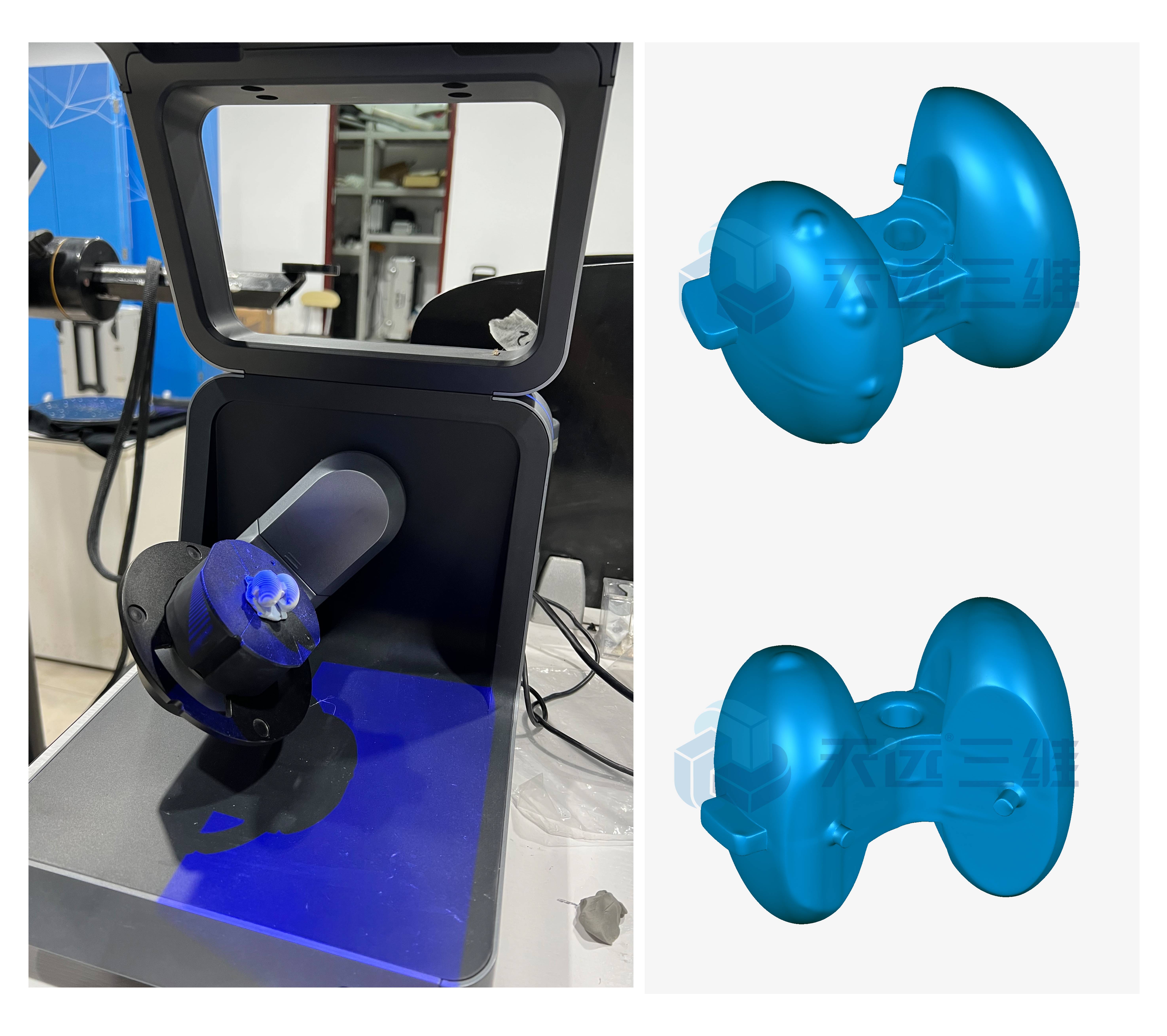 这个装配件对于精度要求很高,AutoScan Inspec全自动桌面三维检测系统,专注于小尺寸精密工件扫描,精度≤10μm,能够获取完整、准确的三维尺寸,检测生产实物与设计图纸之间细微的差别。