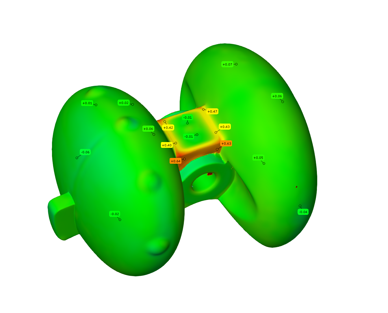 根据之前的经验教训,该企业采用AutoScan Inspec全自动桌面三维检测系统来进行后续的质检工作,主要是进行了两个维度的质检。
