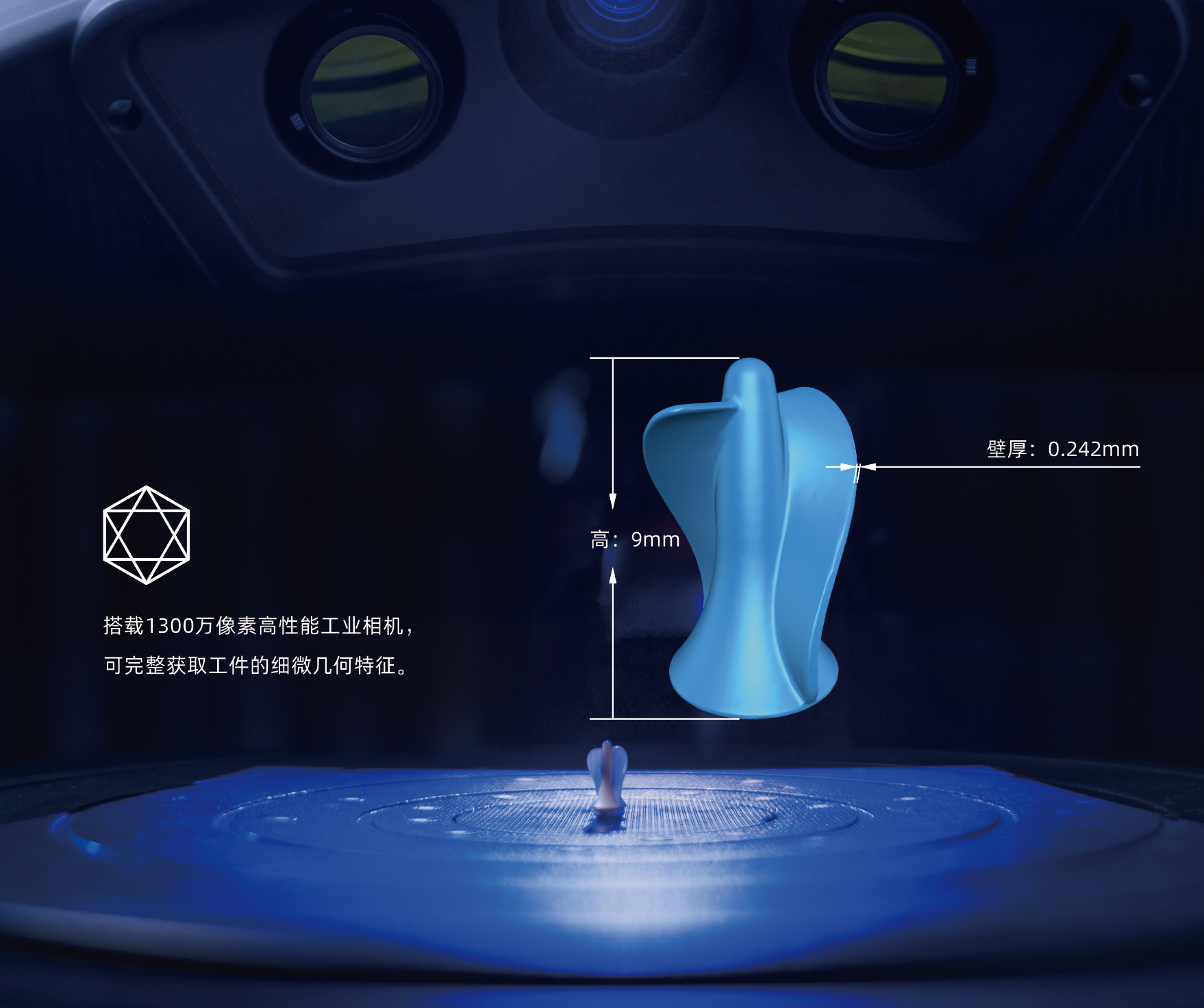 搭载1300万像素高性能工业相机,可完整获取工件的细微几何特征。
