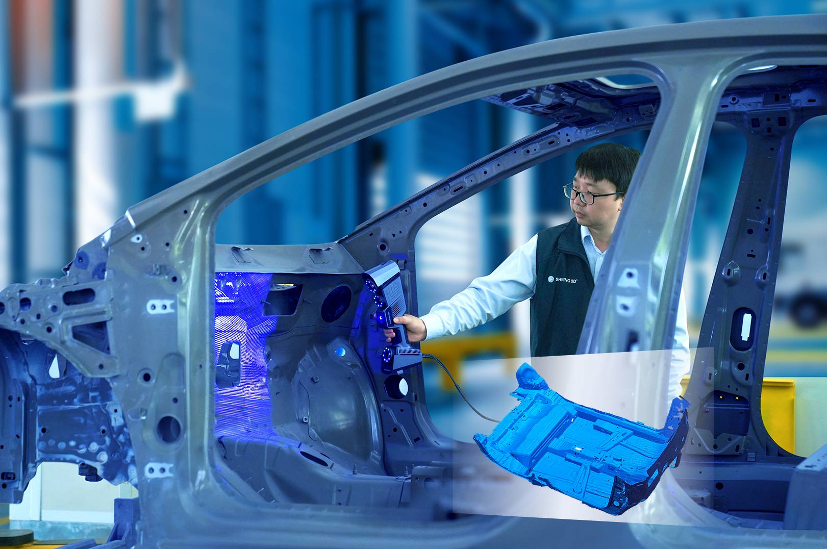 高效模式下,采用原创自定位技术,通过98线密集激光阵列配合三目视角,省去粘贴和去除标志点的冗长辅助工作,且无需光学跟踪,大幅提升工作效率,高性能激光光源无惧黑色、高亮材质。