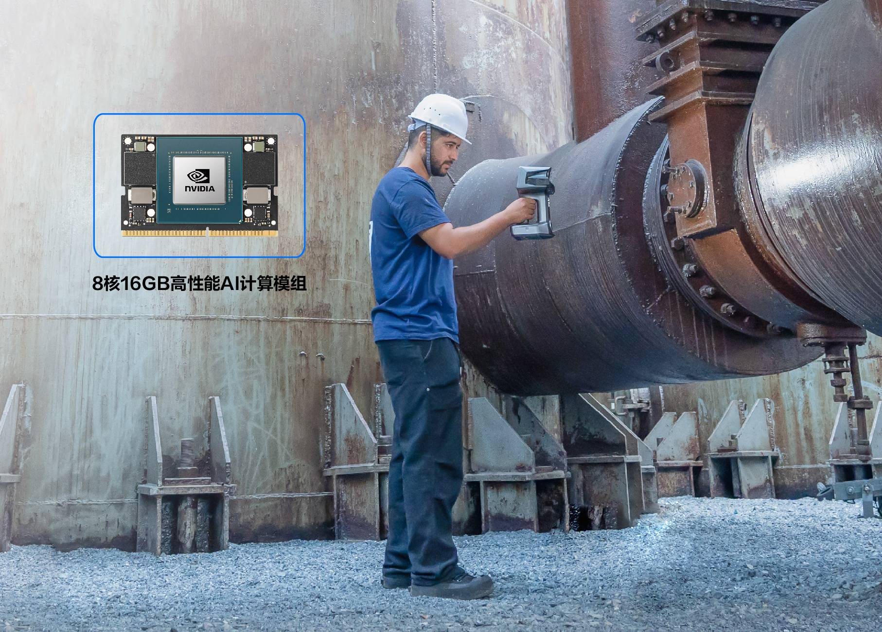 EinScan Libre内置高性能AI处理器(NVIDIA Jetson Orin NX处理器)及5.5英寸可视化交互屏,无需额外配置高性能电脑,即可独立完成数据采集、运算处理等全流程操作。内置可更换锂电池并支持外接移动电源,户外大场景扫描(测绘、田野考古等),告别续航焦虑。