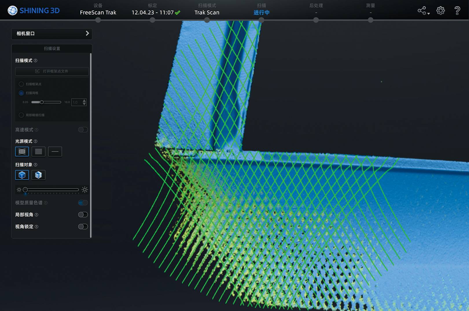 7条平行蓝色激光线精细扫描,轻松获取工件的完整细节数据。