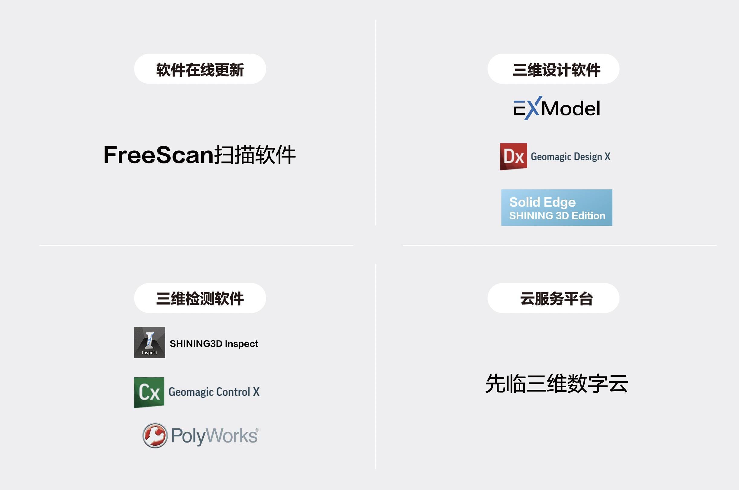 3D扫描仪控制软件支持在线更新,快速获取新版本,体验优质性能,且扫描完成后,可一键导入到主流的三维检测软件和三维设计软件,贯通后续环节。